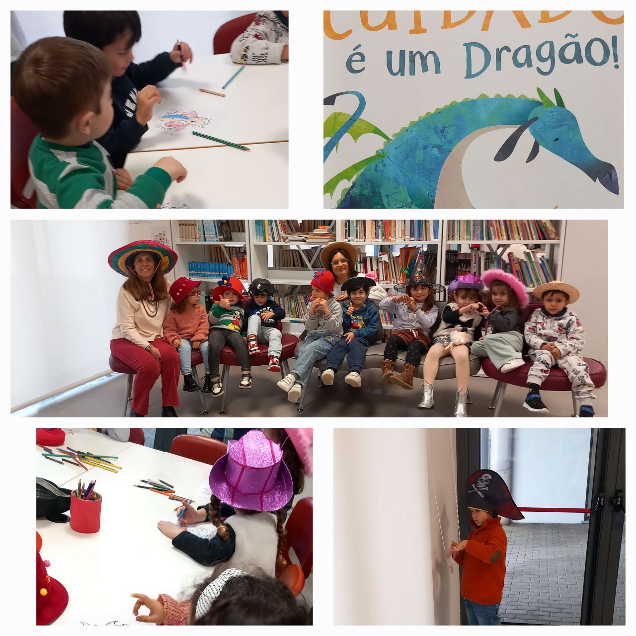 Os alunos da Educadora Sónia, da sala 1, vieram ouvir o conto "Cuidado é um Dragão" de Jonny Lambert.