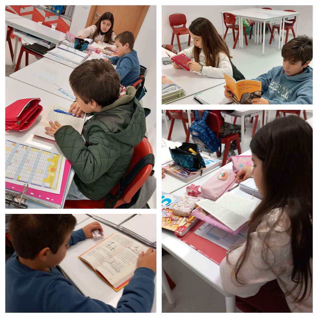 A turma do 5º ano, turma A, continua a ler durante os primeiros 10 minutos de cada aula de português. Os títulos e os autores são muito variados, têm em conta os gostos e grau de competência leitora dos alunos. Este projeto tem aumentado muito as requisições domiciliárias e as leituras dos nossos alunos.