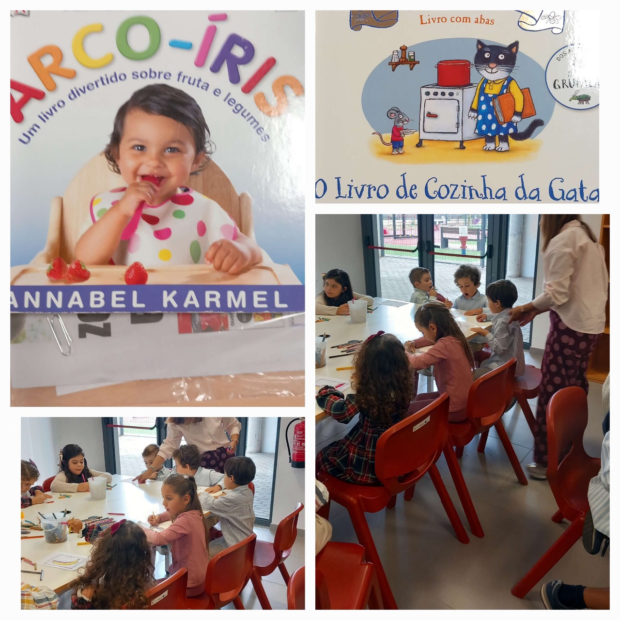 Os alunos do Pré-escolar da sala 1, da Educadora Sónia, vieram à Hora do Conto ouvir falar sobre a Alimentação. Posteriormente, os alunos desenharam alimentos saudáveis de acordo com a temática trabalhada.